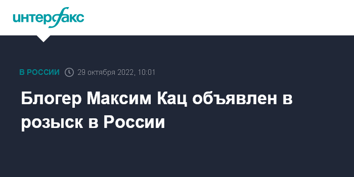 Москва. 29 октября. INTERFAX.RU - МВД РФ объявило в розыск блогера Максима Каца (признан в РФ физлицом-иноагентом).