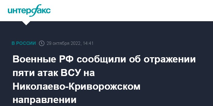 Военные РФ сообщили об отражении пяти атак ВСУ на Николаево-Криворожском направлении
