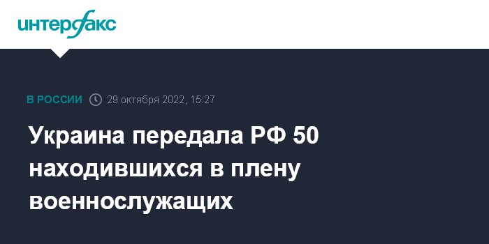 Москва. 29 октября. INTERFAX.RU - Минобороны РФ сообщило о возращении из украинского плена 50 российских военных.