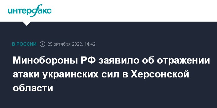 Минобороны РФ заявило об отражении атаки украинских сил в Херсонской области