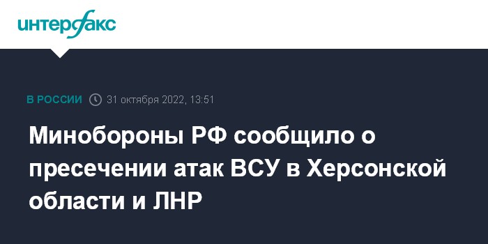 Минобороны РФ сообщило о пресечении атак ВСУ в Херсонской области и ЛНР