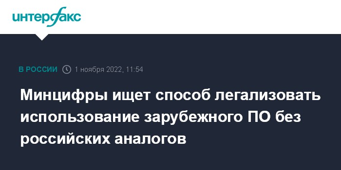 По его словам, необходимо "вывести из-под удара" компании, которые в отсутствии конкурентоспособных российских аналогов вынуждены использовать зарубежное ПО "с определенным нарушением условий их правообладателей (ушедших из РФ - ИФ)". Но при этом в Минцифры осознают, что если "дать полную свободу" использования зарубежного ПО, это негативно отразится на российских разработчиках софта.