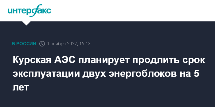 Москва. 1 ноября. INTERFAX.RU - Срок эксплуатации энергоблоков №3 и №4 Курской АЭС планируется продлить, сообщили "Интерфаксу" в пресс-службе атомной станции.