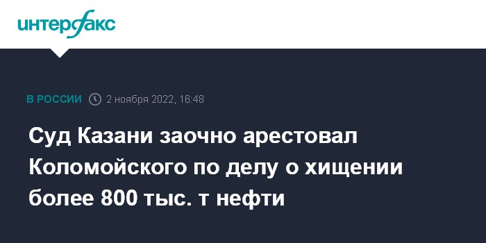 Суд Казани заочно арестовал Коломойского по делу о хищении более 800 тыс. т нефти