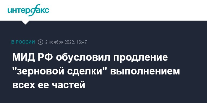 МИД РФ обусловил продление "зерновой сделки" выполнением всех ее частей
