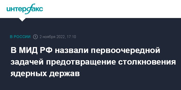 В МИД РФ назвали первоочередной задачей предотвращение столкновения ядерных держав