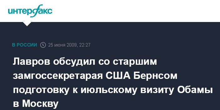 Лавров обсудил со старшим замгоссекретарая США Бернсом подготовку к июльскому визиту Обамы в Москву
