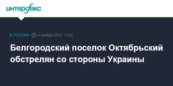 Москва. 4 ноября. INTERFAX.RU - Губернатор Белгородской области Вячеслав Гладков сообщил об обстреле со стороны Украины поселка Октябрьский в Белгородском районе.