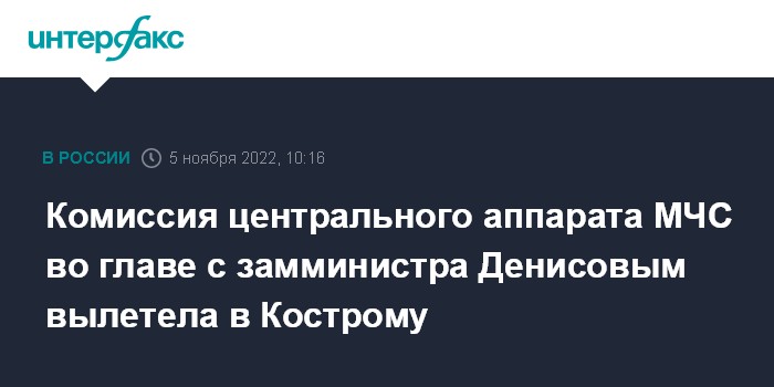 Комиссия центрального аппарата МЧС во главе с замминистра Денисовым вылетела в Кострому