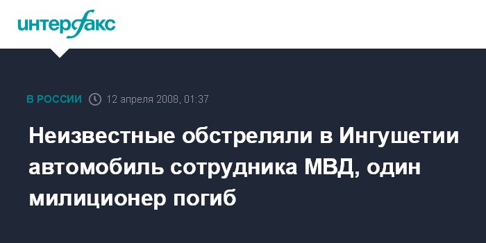Неизвестные обстреляли в Ингушетии автомобиль сотрудника МВД, один милиционер погиб