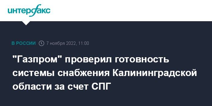 "Газпром" проверил готовность системы снабжения Калининградской области за счет СПГ