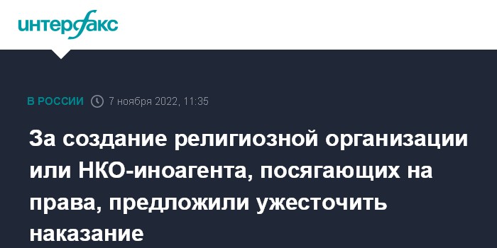 За создание религиозной организации или НКО-иноагента, посягающих на права, предложили ужесточить наказание