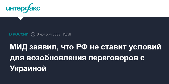 МИД заявил, что РФ не ставит условий для возобновления переговоров с Украиной