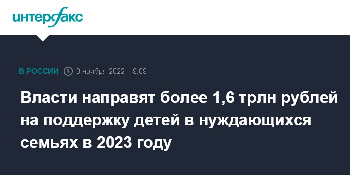 Власти направят более 1,6 трлн рублей на поддержку детей в нуждающихся семьях в 2023 году