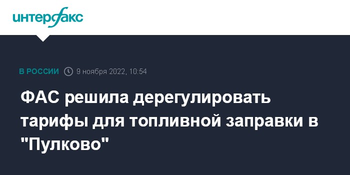 Москва. 9 ноября. INTERFAX.RU - Федеральная антимонопольная служба планирует отменить регулирование тарифов топливно-заправочных компаний (ТЗК) в петербургском аэропорту "Пулково".