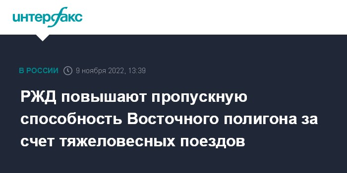 Москва. 9 ноября. INTERFAX.RU - Дальневосточная железная дорога (ДВЖД, филиал РЖД) формирует и отправляет тяжеловесные поезда для повышения пропускной способности Восточного полигона РЖД, сообщает корпоративное издание монополии.