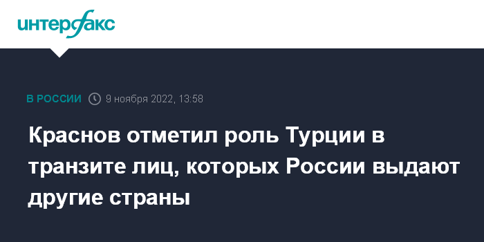 Краснов отметил роль Турции в транзите лиц, которых России выдают другие страны