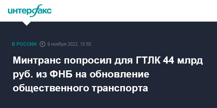 Минтранс попросил для ГТЛК 44 млрд руб. из ФНБ на обновление общественного транспорта