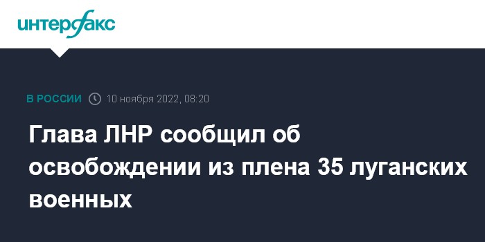 Москва. 10 ноября. INTERFAX.RU - Врио главы Луганской народной республики Леонид Пасечник сообщил, что на родину из плена вернулись 35 военнослужащих Народной милиции ЛНР.