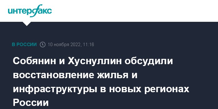 Собянин и Хуснуллин обсудили восстановление жилья и инфраструктуры в новых регионах России