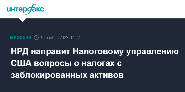 НРД направит Налоговому управлению США вопросы о налогах с заблокированных активов