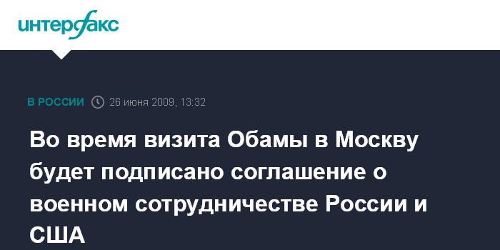 Во время визита Обамы в Москву будет подписано соглашение о военном сотрудничестве России и США