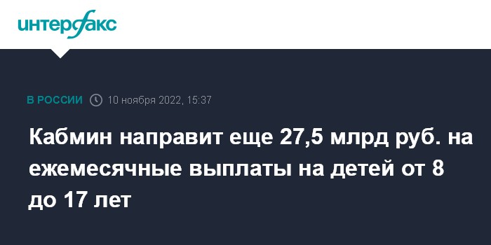 "Правительство направит еще 27,5 млрд рублей на ежемесячные выплаты на детей от восьми до 17 лет в текущем году. По инициативе президента, такая поддержка назначается с апреля семьям с низкими доходами, где воспитываются почти пять миллионов ребят. Они должны получать максимально адресную помощь государства в решении материальных трудностей", - сказал Мишустин на заседании правительства РФ.