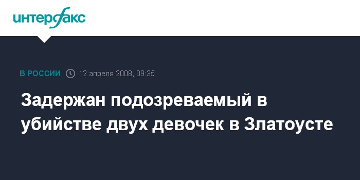 "Задержанный подозревается в убийстве 2 апреля в Златоусте двух семиклассниц и нанесении тяжелых ножевых ранений первокласснице (сестре одной из погибших девочек - ИФ)", - говорится в пресс-релизе.