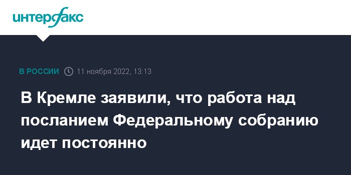 В Кремле заявили, что работа над посланием Федеральному собранию идет постоянно