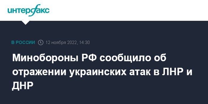 Москва. 12 ноября. INTERFAX.RU - Российские военные заявили об отражении атак украинских войск в Луганской и Донецкой народных республиках.