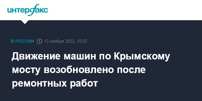 Ранее сообщалось, что 12 ноября до 16:00 по московскому времени в связи с ремонтными работами будет закрыто движение через Крымский мост.
