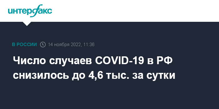 Число случаев COVID-19 в РФ снизилось до 4,6 тыс. за сутки