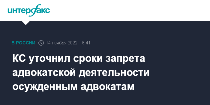 Москва. 14 ноября. INTERFAX.RU - Конституционный суд России уточнил сроки запрета на ведение адвокатской деятельности. Такое постановление опубликовано на сайте суда.