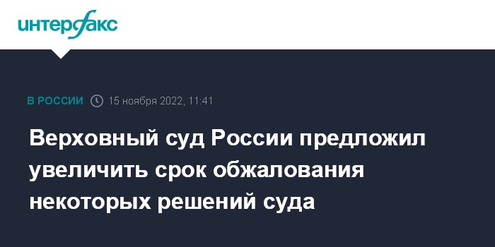 Верховный суд России предложил увеличить срок обжалования некоторых решений суда
