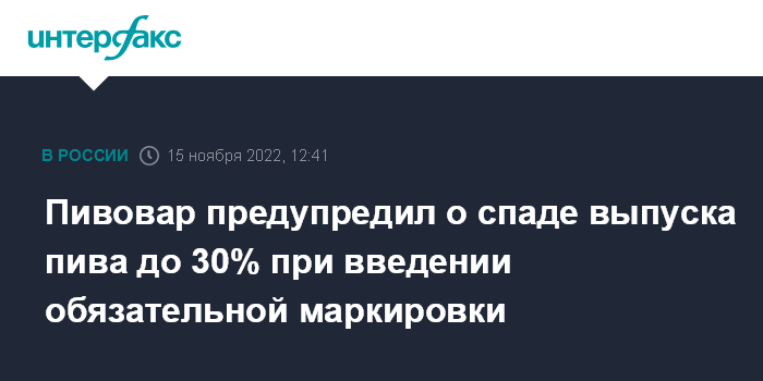 "За девять месяцев этого года "Очаково" уже уплатило в бюджет около 5 млрд рублей. При сохранении объемов продаж в целом за 2022 год заплатим в бюджет около 7 млрд рублей в виде налогов. Нетрудно подсчитать: если в результате введения обязательной цифровой маркировки пива мы вынуждены будем сократить свое производство пива на 20%, то выпадающие потери налоговых платежей только от "Очаково" составят около 1,4 млрд рублей", - сказал он на пресс-конференции.