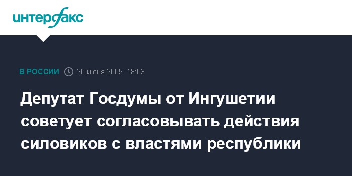 "Предположения, которые высказываются в СМИ о том, что на территории Ингушетии должны наводить порядок чеченские силы, я считаю непродуктивными. Для этого есть руководство республики (Ингушетия)", - сказал депутат.