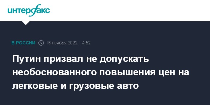 Москва. 16 ноября. INTERFAX.RU - Цены на автомобили, как грузовые, так и легковые, не должны необоснованно завышаться, несмотря на существующие сложности с логистикой и поставкой комплектующих, заявил президент РФ Владимир Путин на совещании с членами правительства в среду, высказав надежду, что Минпромторг РФ и Федеральная антимонопольная служба (ФАС) держат этот вопрос на постоянном контроле.