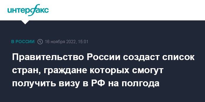 Правительство России создаст список стран, граждане которых смогут получить визу в РФ на полгода