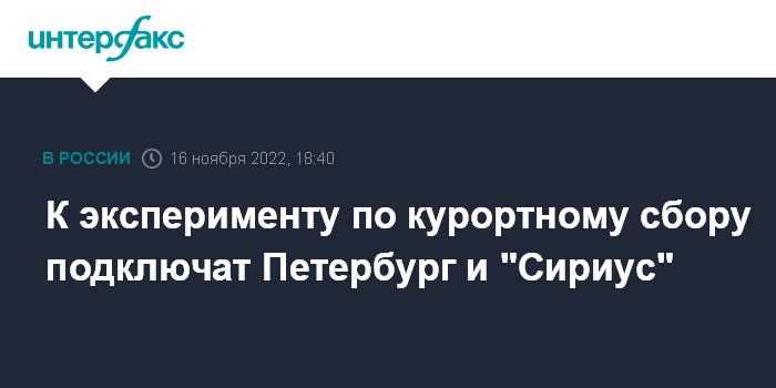 К эксперименту по курортному сбору подключат Петербург и "Сириус"
