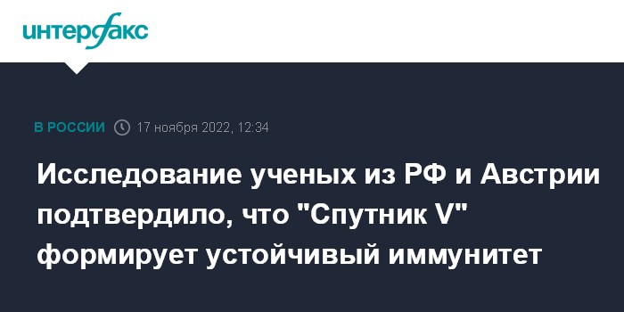 Исследование ученых из РФ и Австрии подтвердило, что "Спутник V" формирует устойчивый иммунитет