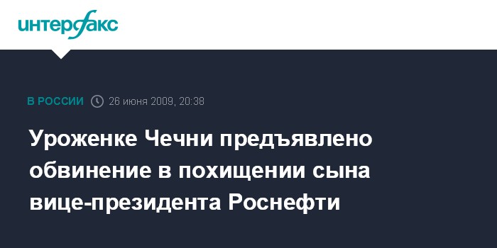 Москва. 26 июня. INTERFAX.RU - Следственным управлением Следственного комитета при прокуратуре РФ по городу Москве предъявлено обвинение уроженке Чеченской республики, которая в составе организованной преступной группы участвовала в похищении сына вице-президента ОАО "Роснефть".