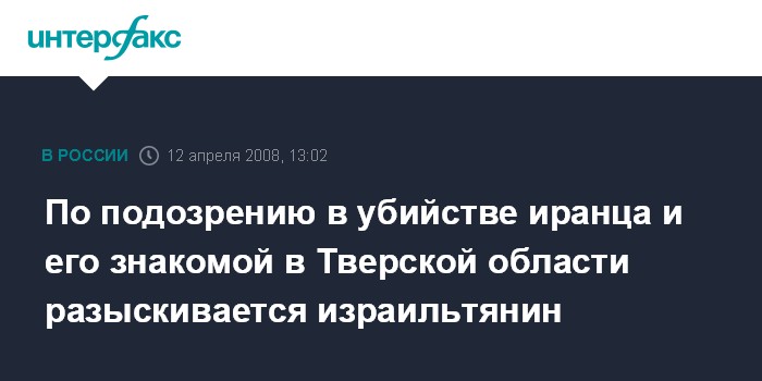 Москва. 12 апреля. ИНТЕРФАКС - Гражданин Израиля подозревается в убийстве двух человек в городе Кимры Тверской области, сообщил "Интерфаксу" в субботу по телефону источник в местных правоохранительных органах.