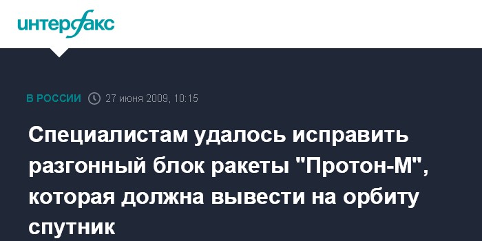 Ранее запуск планировался на 23:10 мск 29 июня 2009 года. Однако в минувшую среду при заправке топливом разгонного блока возникли технические неполадки.