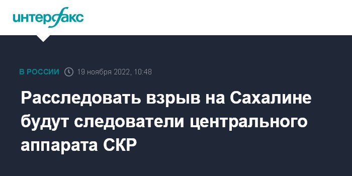 Москва. 19 ноября. INTERFAX.RU - Расследованием взрыва в доме на Сахалине займется центральный аппарат Следственного комитета РФ (СКР), сообщает в субботу телеграм-канал ведомства.