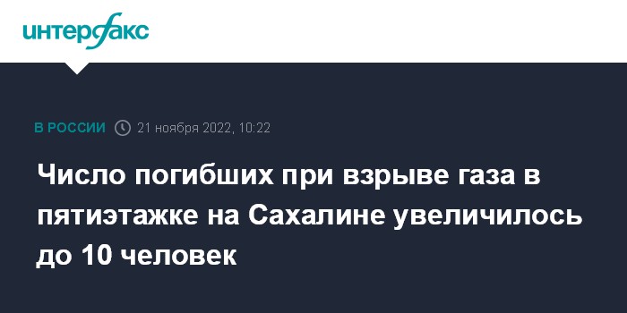 "Количество погибших при взрыве газа в жилом доме в Тымовском выросло до десяти человек", - говорится в сообщении.