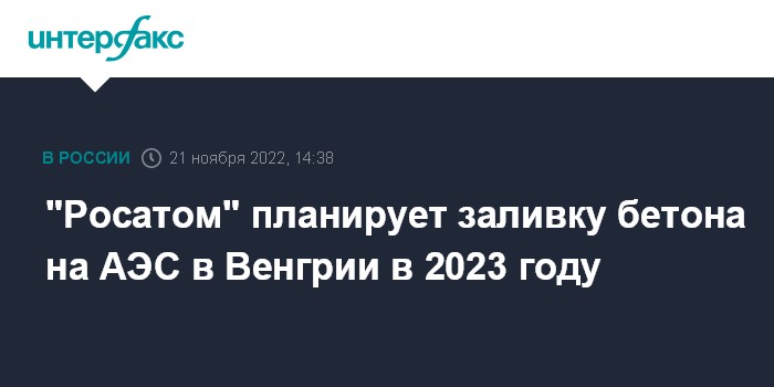 В конце августа Управление по атомной энергетике Венгрии выдало "Росатому" разрешение на строительство V и VI энергоблоков АЭС "Пакш". Заливка первого бетона ожидается осенью 2023 году.