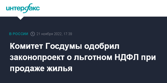 Комитет Госдумы одобрил законопроект о льготном НДФЛ при продаже жилья