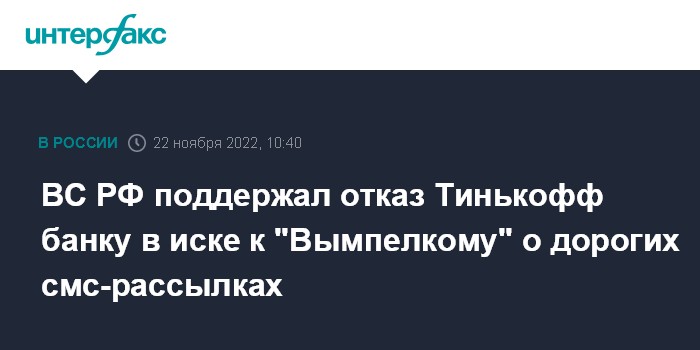 ВС РФ поддержал отказ Тинькофф банку в иске к "Вымпелкому" о дорогих смс-рассылках