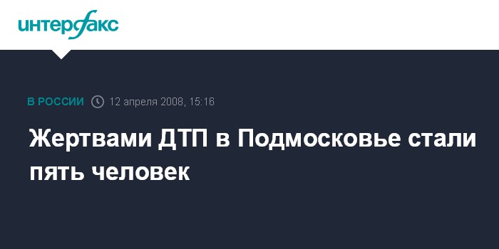 Москва. 12 апреля. ИНТЕРФАКС-МОСКВА - В Нарофоминском районе Московской области в результате дорожно-транспортного происшествия погибли пять человек, сообщил "Интерфаксу" источник в правоохранительных органах региона.