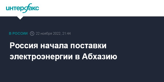 Россия начала поставки электроэнергии в Абхазию 22 ноября вечером.